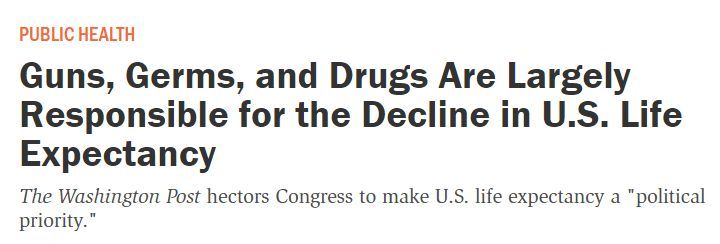盡管醫(yī)療保險覆蓋范圍擴大了,但美國人的預期壽命并沒有增加,之后還出現(xiàn)下降。對于這一點,文章解釋稱,在過去十年中,美國包括他殺、自殺以及意外事故在內(nèi)的槍支死亡率以及絕對數(shù)量都呈現(xiàn)上升趨勢。大多數(shù)死于槍支的人年齡相對較為年輕,因此也降低了美國人口的總體預期壽命。