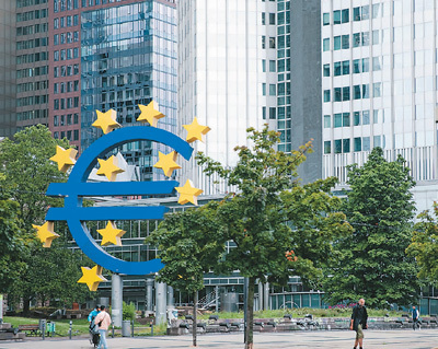 在德國法蘭克福拍攝的歐元標志。新華社記者 張 帆攝