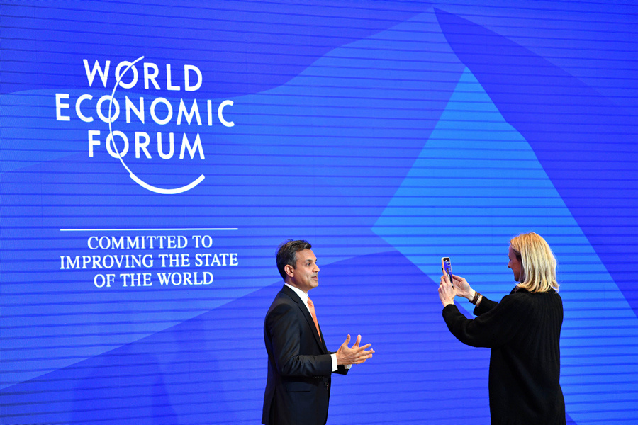 1月15日,在瑞士達沃斯,與會者參加世界經(jīng)濟論壇2024年年會。新華社記者連漪攝