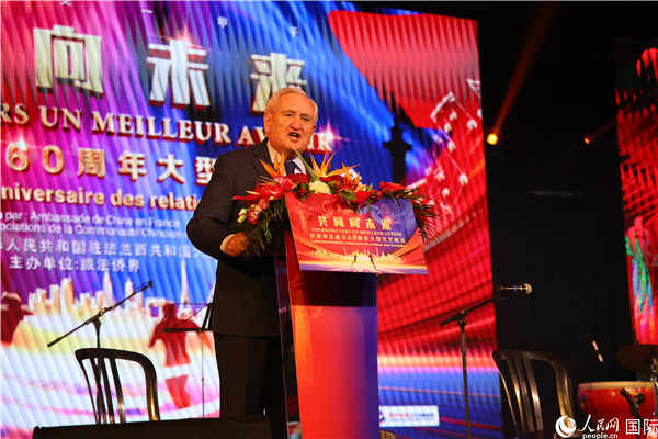 法國(guó)前總理拉法蘭出席晚會(huì)并致辭。 人民網(wǎng)記者 尚凱元攝