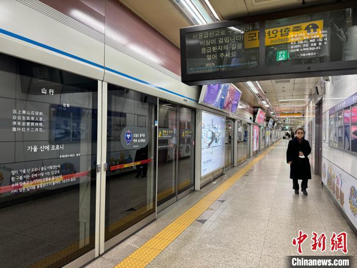 當(dāng)?shù)貢r(shí)間1月21日,首爾地鐵明洞站張貼的中文古詩(shī)。 中新社記者 劉旭 攝