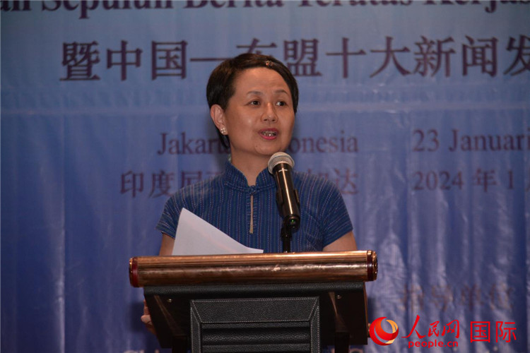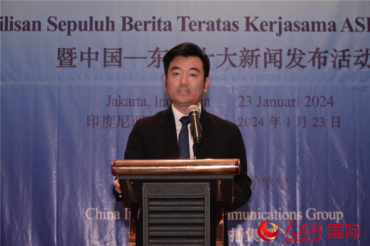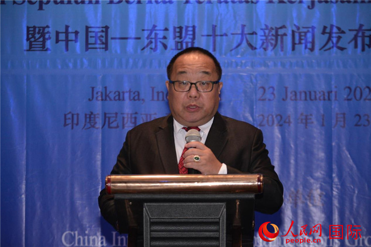 郭延軍發(fā)布“2023年中國(guó)—東盟十大新聞”。人民網(wǎng)記者 曹師韻攝