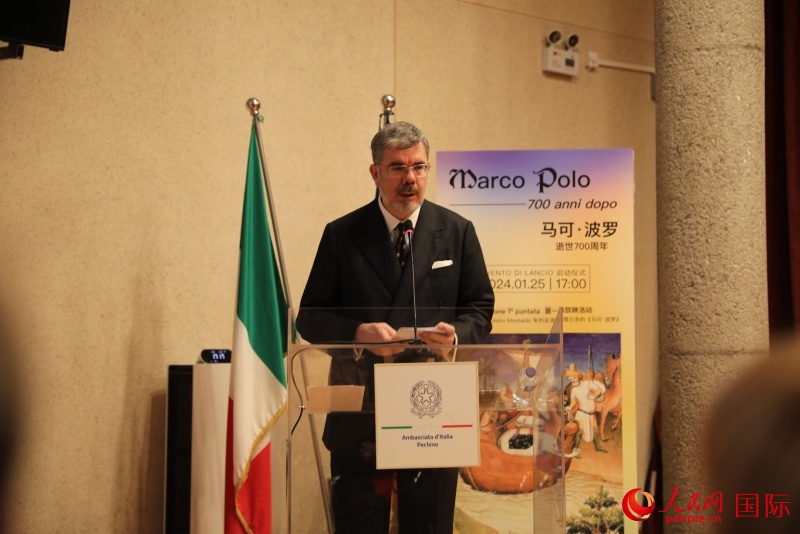 意大利駐華大使安博思在“馬可·波羅逝世700周年”系列紀(jì)念活動開幕式上發(fā)表致辭。人民網(wǎng) 劉動攝