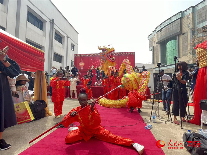 尼日利亞學(xué)生表演舞龍。人民網(wǎng)記者 姜宣攝