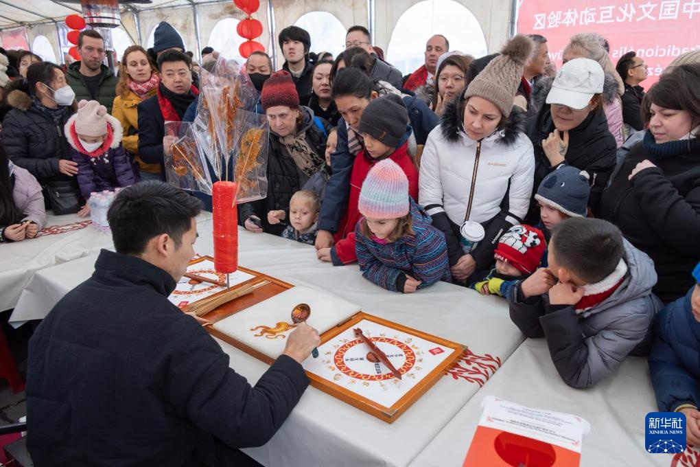 新春廟會上,豐富多彩的文藝演出令人目不暇接,除腰鼓、旗袍秀、太極扇、川劇變臉、京劇等傳統(tǒng)節(jié)目外,今年還新增了中國民族舞蹈、馬面裙走秀、民樂合奏等節(jié)目。匈牙利尤紹·蓋爾蓋伊舞團(tuán)則在廟會上展示了匈牙利民族舞蹈和民歌演奏。此外,中醫(yī)義診區(qū)、漢語角、漢服試穿區(qū)、舞龍體驗(yàn)區(qū)以及中國美食區(qū)等也排起長龍,熱鬧非凡。