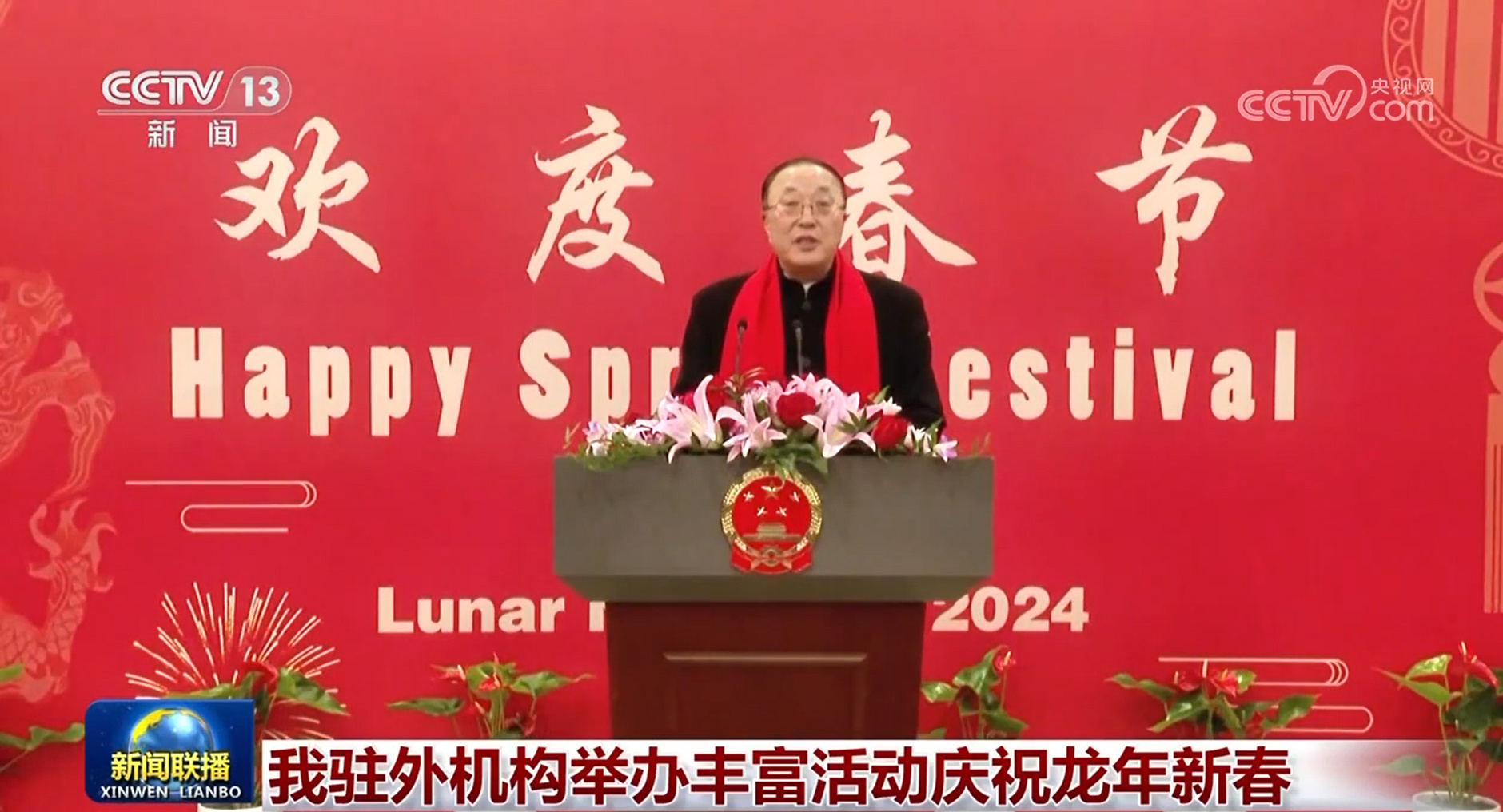 央視網(wǎng)消息(新聞聯(lián)播):連日來,我駐國際組織代表團(tuán)和駐多國使館舉辦春節(jié)招待會等活動,共慶龍年新春。