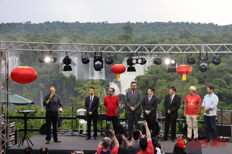 人民網(wǎng)伊瓜蘇2月11日電 (記者邵世均、陳海琪)2月10日,世界著名景觀伊瓜蘇大瀑布前張燈結(jié)彩、熱鬧非凡,由中國駐巴西使館、駐圣保羅總領(lǐng)館和巴西伊瓜蘇市政府聯(lián)合主辦的“歡樂春節(jié)——瀑布城喜迎中國龍年”首場文藝表演在此拉開序幕。中國駐巴西大使館公使銜參贊舒建平、駐圣保羅總領(lǐng)館代表、伊瓜蘇市議長莫拉雷斯、市旅游局局長安德烈及當?shù)馗鹘缬讶说?00余人齊聚一堂。多家中巴媒體、當?shù)鼐W(wǎng)紅現(xiàn)場報道活動盛況。