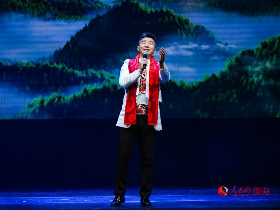 | 中國(guó)僑聯(lián)“四海同春”藝術(shù)團(tuán)團(tuán)長(zhǎng)郭啟華致辭。人民網(wǎng) 郭錦標(biāo)攝 |