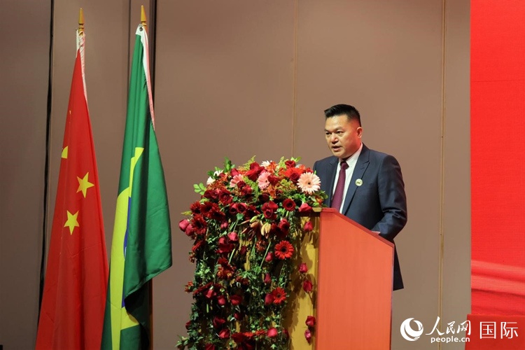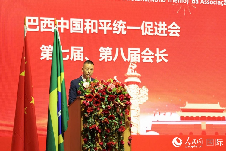巴西和統(tǒng)會新任會長張小春發(fā)表就職演講。人民網(wǎng)記者 時(shí)元皓攝