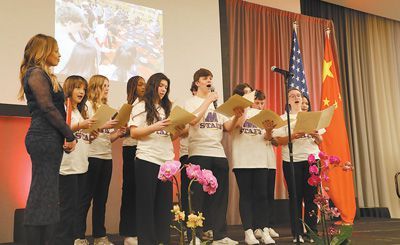 艾奧瓦州馬斯卡廷中學(xué)的學(xué)生們演唱歌曲《情緣留住永恒的記憶》。本報(bào)記者 李志偉攝