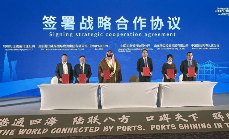 當(dāng)天活動上,山東港口集團多家機構(gòu)進(jìn)行了業(yè)務(wù)推介。來自中國、阿聯(lián)酋、沙特等國的企業(yè)簽署了戰(zhàn)略合作協(xié)議。