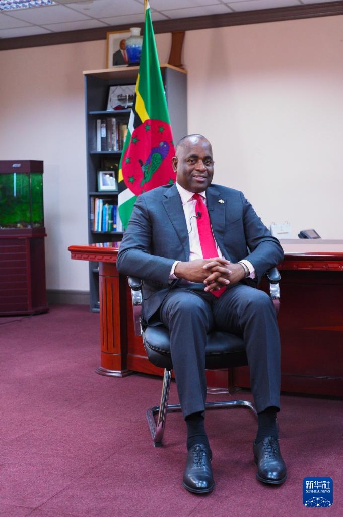 3月4日,多米尼克總理斯凱里特在首都羅索的總理辦公室接受新華社記者獨家專訪。新華社記者 趙凱 攝
