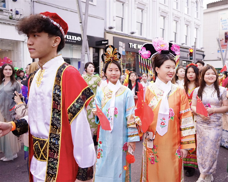 科克大學(xué)組織了中國少數(shù)民族文化展示隊伍,身著民族服飾的隊員們展示著豐富多彩的中國風(fēng)情。 科克大學(xué)孔子學(xué)院供圖