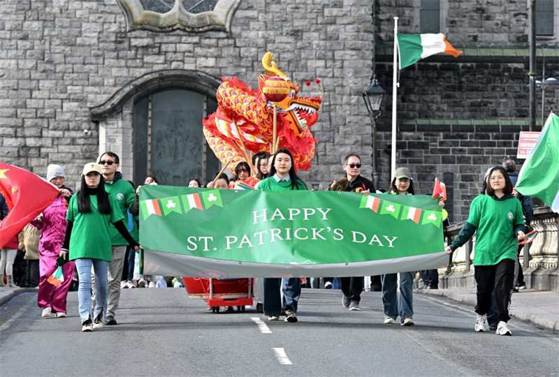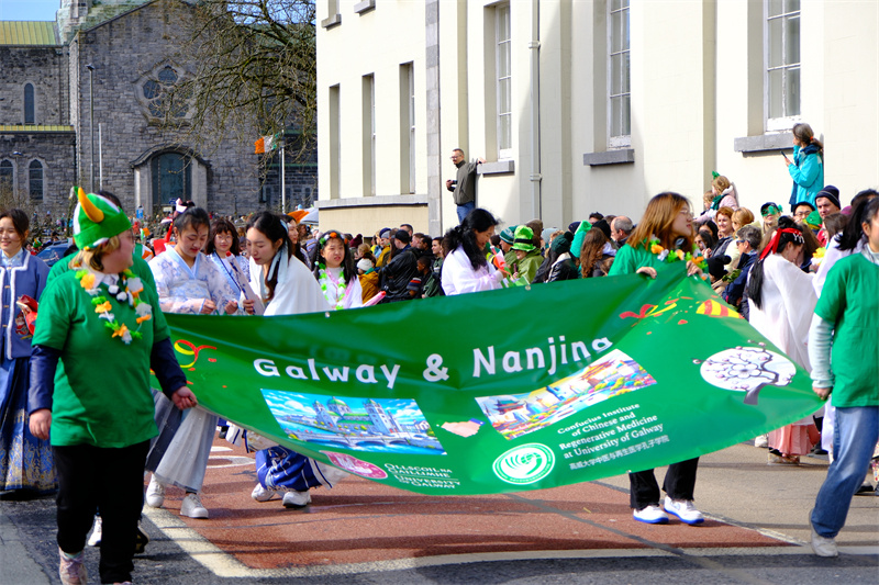 3月17日是愛爾蘭一年一度的圣帕特里克節(jié),高威大學(xué)孔子學(xué)院組建方隊加入了當(dāng)?shù)氐膽c祝行列展示中國傳統(tǒng)文化。高威大學(xué)孔子學(xué)院供圖
