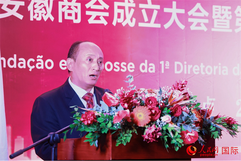 巴西中國安徽商會(huì)首屆理監(jiān)事會(huì)會(huì)長魏貴德發(fā)表就職演講。人民網(wǎng)記者 宋亦然攝