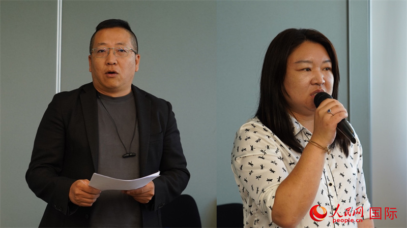 前協(xié)會專職秘書賀翔鵬(左)和新任專職秘書李琳(右)分別就各自工作進(jìn)行總結(jié)和介紹。人民網(wǎng) 劉暢攝