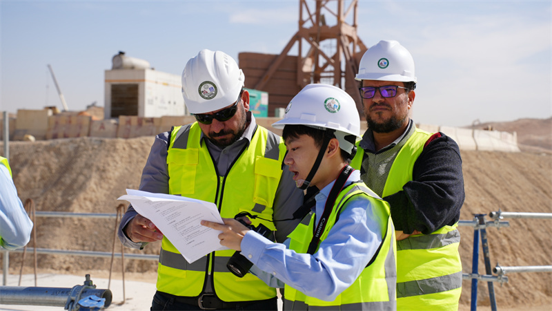 中外員工在現(xiàn)場交流。中建中東公司供圖