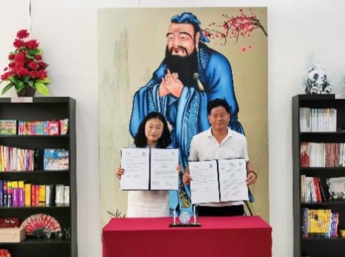 雙方代表簽約合影。三一一大學孔子學院供圖