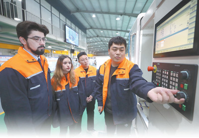 沈陽工學院與武漢華中數控股份有限公司共同建設“一帶一路”訂單班,聯合培養(yǎng)行業(yè)急需的“專業(yè)+俄語”高素質應用型人才,訂單班學生畢業(yè)后將回國從事數控技術相關工作,實現高質量就業(yè)。圖為中國同學和留學生分享操作經驗。新華社記者 楊 青攝