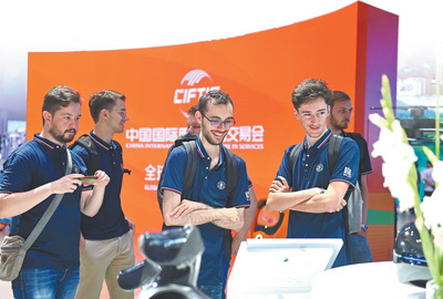北京交通大學留學生在北京國家會議中心參觀2023年中國國際服務貿易交易會。胡慶明攝(影像中國)