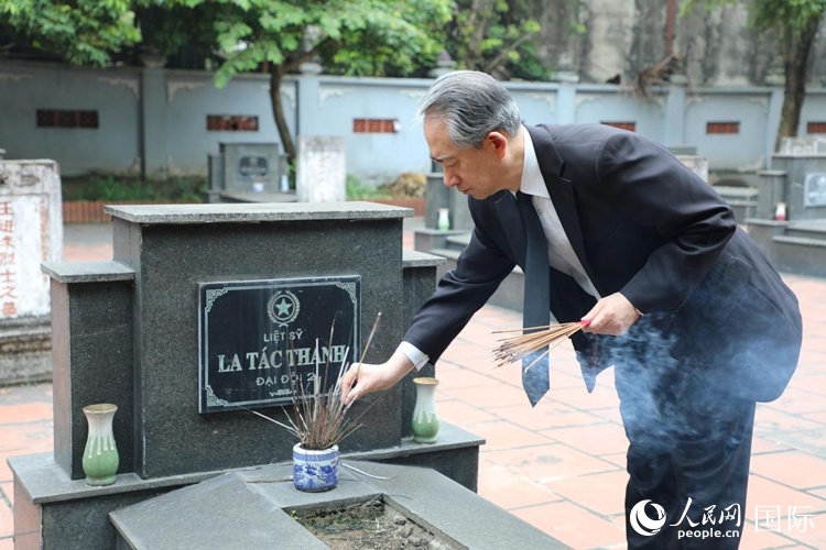 熊波大使向犧牲的中國(guó)援越抗法、抗美英烈敬香。人民網(wǎng)記者 楊曄攝