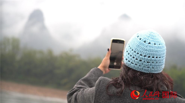 3月15日,外國記者們登上漓江游船。青峰夾岸、綠水縈洄、峽谷峭壁、懸泉飛瀑……被清晨霧氣籠罩著的漓江宛如一副水墨山水畫。當(dāng)游船行至著名景點(diǎn)“黃布倒影”——20元人民幣取景地時(shí),外國記者們更是拿出早就準(zhǔn)備好的人民幣,打卡留念。