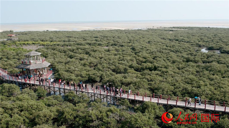 記者們首站來到位于廣西最南端的北海市。在金海灣紅樹林生態(tài)旅游區(qū),3000多畝紅樹林規(guī)模壯觀,令人驚嘆。紅樹林是熱帶、亞熱帶海岸潮間帶特有的植物群落,能抗風(fēng)抵浪,素有“海上森林”“海岸衛(wèi)士”之稱??吹竭@里的景色后,巴西《論壇雜志》記者維達(dá)爾有感而發(fā):“這太不可思議了!這里的紅樹林讓我想起我的家鄉(xiāng),盡管我們相隔萬里,但我們是命運(yùn)共同體。”