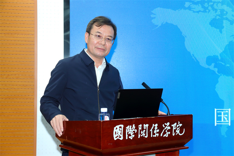 國際關(guān)系學(xué)院黨委書記幸明軍致辭。國際關(guān)系學(xué)院供圖