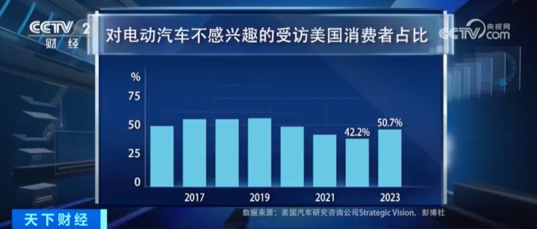 △一項(xiàng)針對(duì)25萬美國汽車消費(fèi)者的調(diào)查顯示,2023年對(duì)于購買和租賃電動(dòng)汽車不感興趣的消費(fèi)者占比已經(jīng)超過了一半,達(dá)到了50.7%。