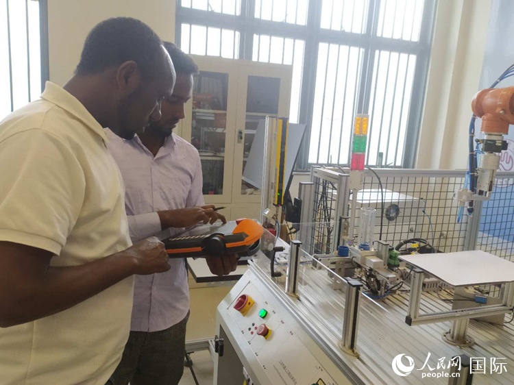 江絳向人民網(wǎng)記者介紹說,埃塞魯班工坊由天津職業(yè)技術(shù)師范大學(xué)與埃塞聯(lián)邦職業(yè)技術(shù)培訓(xùn)學(xué)院合作建立,2021年4月28日揭牌啟運(yùn)。項(xiàng)目定位于人工智能領(lǐng)域,對接埃塞合作院校的制造技術(shù)、電子與通信技術(shù)、電氣與控制技術(shù)3個(gè)本科專業(yè)和電氣自動(dòng)化與控制技術(shù)管理碩士專業(yè)1個(gè)研究生專業(yè),提供學(xué)位教育與技術(shù)培訓(xùn)。
