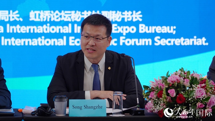中國國際進口博覽局、虹橋論壇秘書處宋尚哲發(fā)言。人民網(wǎng) 劉暢攝