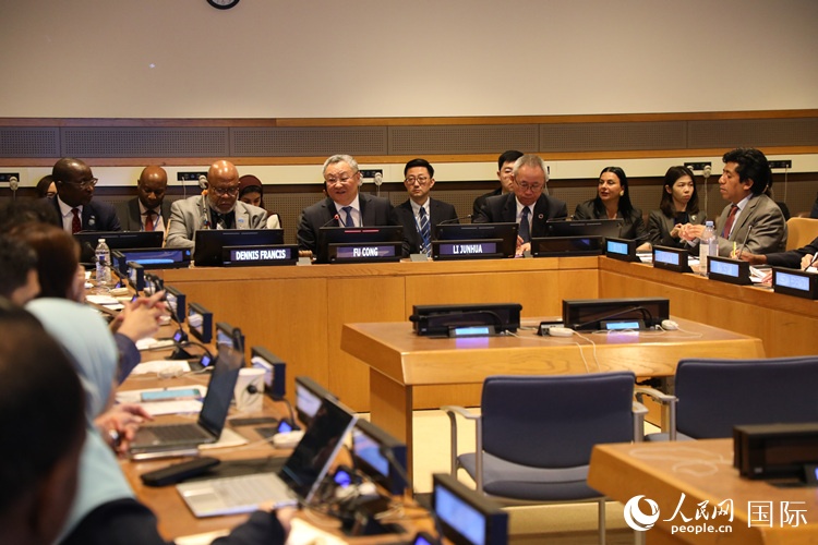 40多國常駐代表、副代表以及聯(lián)合國工發(fā)組織、糧農(nóng)組織、區(qū)域經(jīng)委會、南南合作辦公室等聯(lián)合國機構官員等100多人參加全球發(fā)展倡議之友小組高級別會議。 人民網(wǎng)記者 李志偉攝