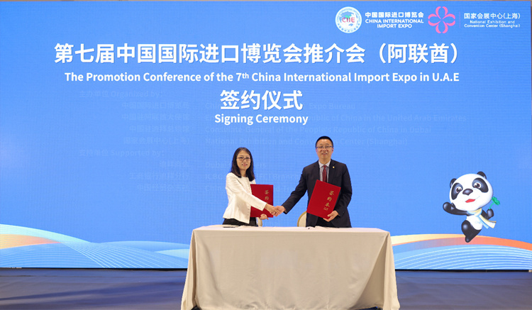 中國國際進(jìn)口博覽局與阿聯(lián)酋中國商會(huì)簽署合作備忘錄。中國國際進(jìn)口博覽局供圖