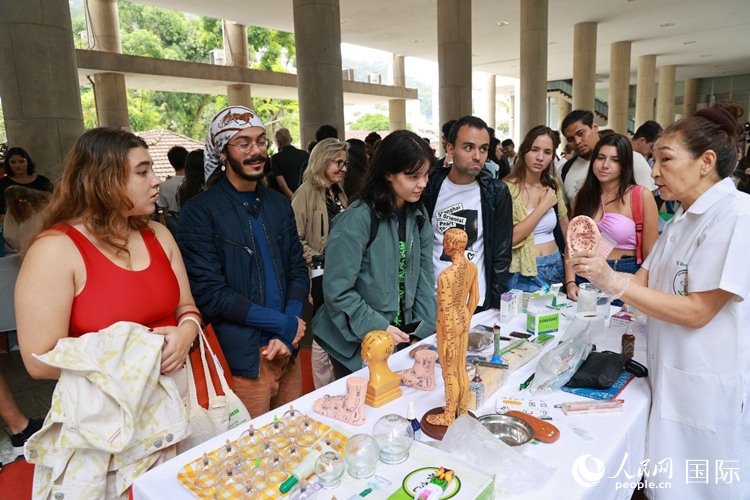 活動現(xiàn)場,巴西友人體驗中醫(yī)按摩和針灸。人民網(wǎng)記者 陳海琪攝
