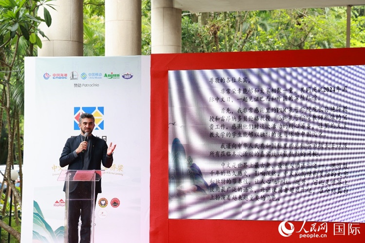 人民網(wǎng)里約熱內(nèi)盧4月18日電 (記者陳海琪)當(dāng)?shù)貢r間4月18日,巴西里約天主教大學(xué)孔子學(xué)院成功舉辦2024年“國際中文日”慶?;顒?。中國駐里約熱內(nèi)盧總領(lǐng)事田敏、里約天主教大學(xué)校長安德森·佩德羅索等嘉賓出席活動并致辭。