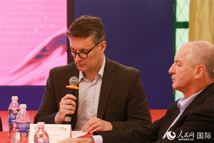 巴西里約大都會(huì)研究所執(zhí)行官西奧·舒克在座談會(huì)上致辭。人民網(wǎng)記者 陳海琪攝