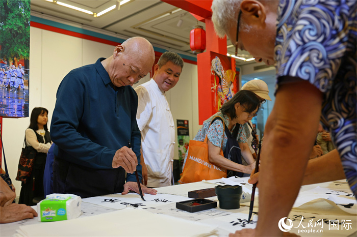 現(xiàn)場觀眾體驗(yàn)書法藝術(shù)。人民網(wǎng)記者 白元琪攝