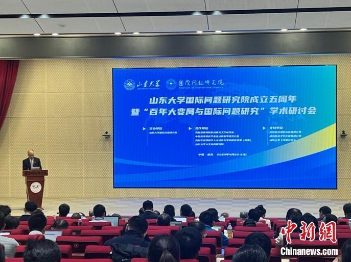 中新網(wǎng)威海4月21日電(陳天浩)2024年4月20日,由山東大學(xué)國(guó)際問(wèn)題研究院主辦的“山東大學(xué)國(guó)際問(wèn)題研究院成立五周年”暨“百年大變局與國(guó)際問(wèn)題研究”學(xué)術(shù)研討會(huì)在山東大學(xué)召開(kāi)。來(lái)自國(guó)內(nèi)各高校和科研機(jī)構(gòu)的逾百名專家學(xué)者圍繞百年大變局下的區(qū)域國(guó)別研究與國(guó)際問(wèn)題研究開(kāi)展研討。