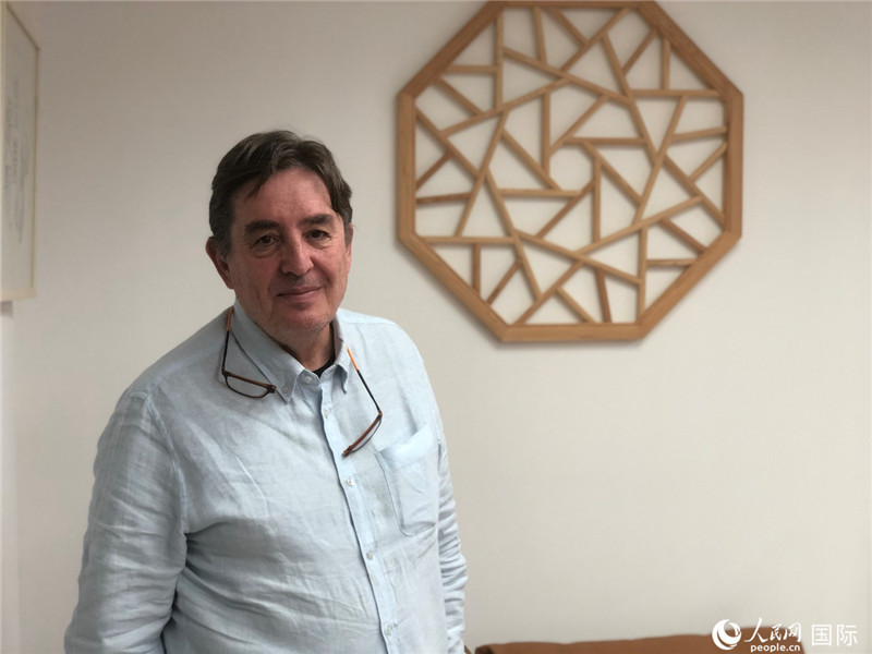西班牙塞萬提斯學(xué)院院長路易斯·加西亞·蒙特羅在北京接受人民網(wǎng)專訪。塞萬提斯學(xué)院供圖