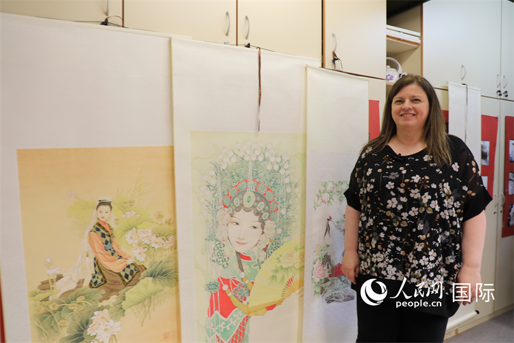 圖為哈伊納爾卡向記者展示她的中國畫作品。人民網(wǎng)記者 沈小曉攝