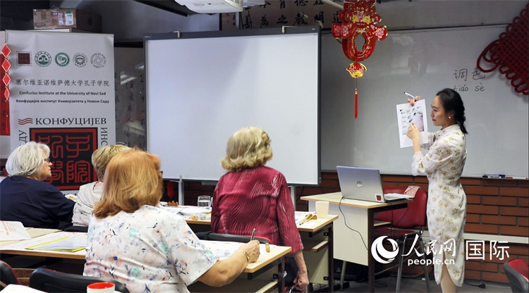 圖為諾維薩德大學(xué)孔子學(xué)院中國畫課堂。人民網(wǎng)記者 沈小曉攝