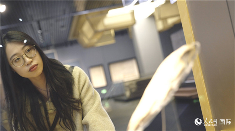 尹怡然在殷墟博物館新館參觀。人民網(wǎng)記者 劉寧攝