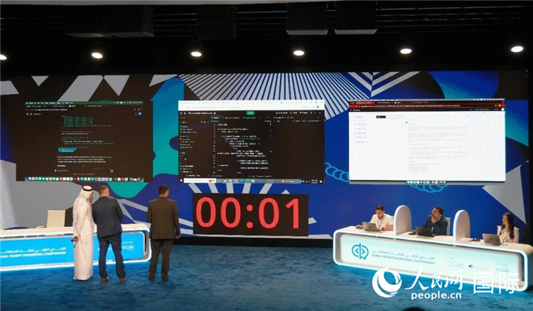 圖為編程類決賽場景。三名選手需要在10分鐘內(nèi)完成特定任務(wù)。人民網(wǎng)記者 管克江攝