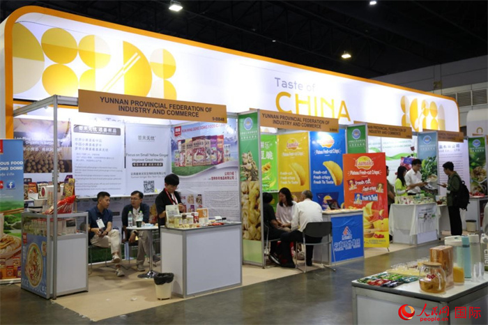 展商在中國(guó)展區(qū)洽談。人民網(wǎng)記者 楊一攝