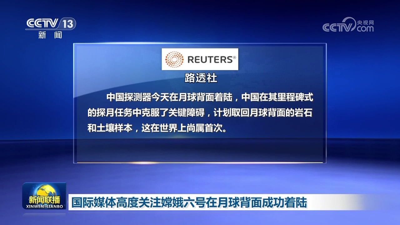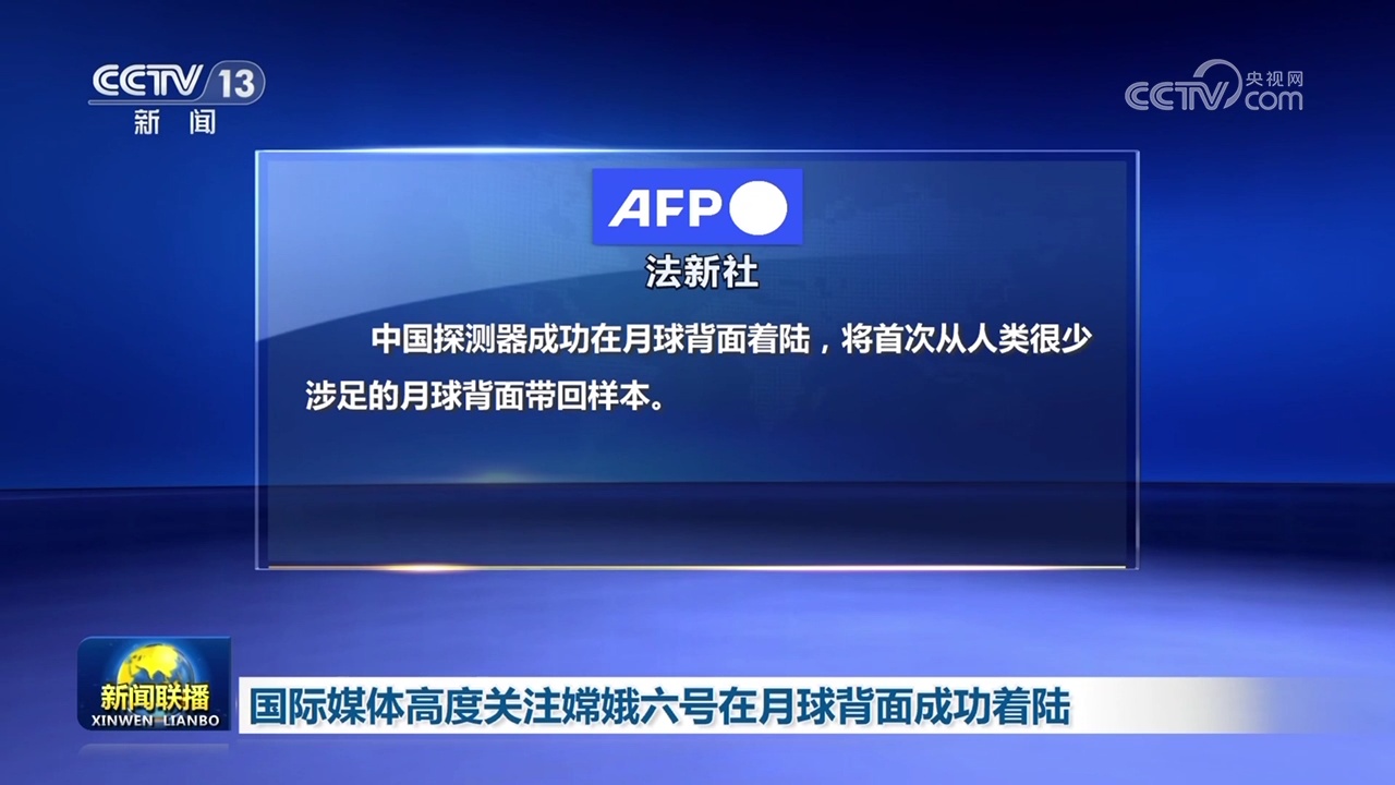 央視網(wǎng)消息(新聞聯(lián)播):國際媒體高度關(guān)注嫦娥六號今天(6月2日)在月球背面成功著陸。