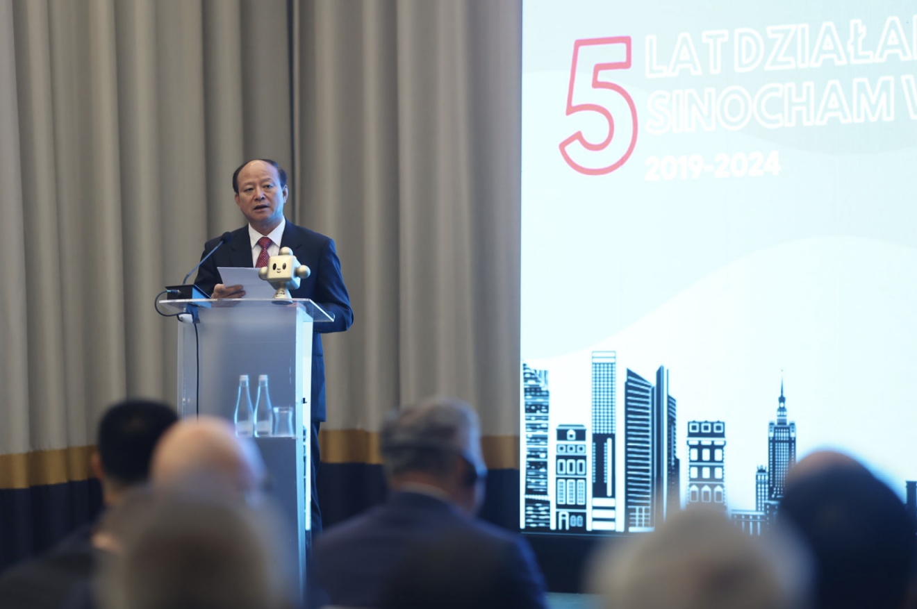 中國駐波蘭特命全權(quán)大使孫霖江致辭。中國貿(mào)促會駐波蘭代表處供圖