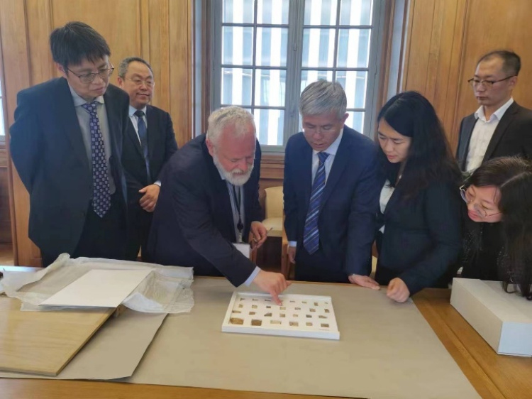 山東大學(xué)校長李術(shù)才率團(tuán)訪問法國國家圖書館。山東大學(xué)供圖
