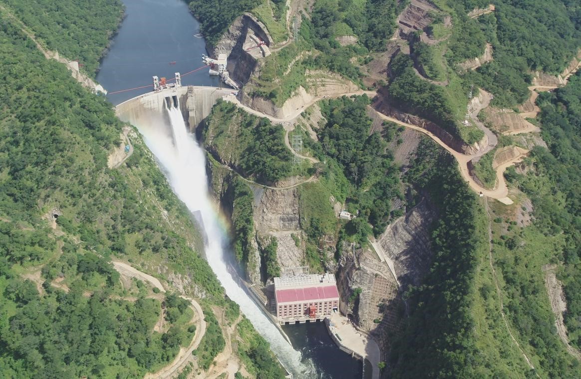 剛果(金)布桑加水電站攔河大壩泄洪。中鐵資源集團(tuán)供圖