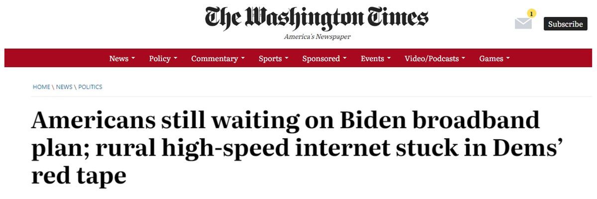 報道指出,美國農(nóng)村地區(qū)對寬帶服務(wù)的等待已久,多數(shù)地方仍依賴通過銅線傳輸速度較慢的互聯(lián)網(wǎng),無法傳輸大量數(shù)據(jù),一些地區(qū)甚至根本沒聯(lián)網(wǎng)?!皼]有一鏟子土被翻起,用來連接人們?!笨栒f。美政府2021年11月將該項資金作為1.2萬億美元兩黨基礎(chǔ)設(shè)施投資和就業(yè)法案的一部分簽署成為法律。美國所有56個州和領(lǐng)地都已提交初步提案,但截至本月,只有9個州和華盛頓特區(qū)獲準(zhǔn)參與“寬帶公平接入與部署”(BEAD)計劃。