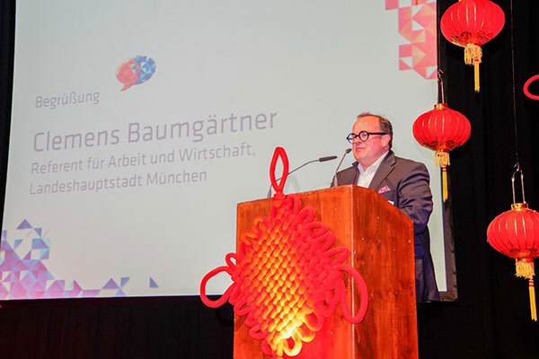 鮑姆蓋特納在致辭。(駐慕尼黑總領(lǐng)館提供)